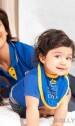 While Shilpa Shetty – the owner of Rajasthan Royals goes casual in her team’s royal blue T-shirt at the Hello! magazine shoot, the super cute Viaan Raj Kundra is also seen sporting a tiny RR top, with a bib attached that displays the name of the team. The pictures are very candid, as Shetty and her son indulge in some great fun and banter on a super cozy bed. Viaan is a natural in front of the cameras. While the yummy mummy seems to be busy trying to stop him from wandering off, Viaan is having the time of his life, taking a gleeful delight in being the centre of attention. His two front milky teeth become visible when he smiles and we find the cutie all the more adorable when does so.