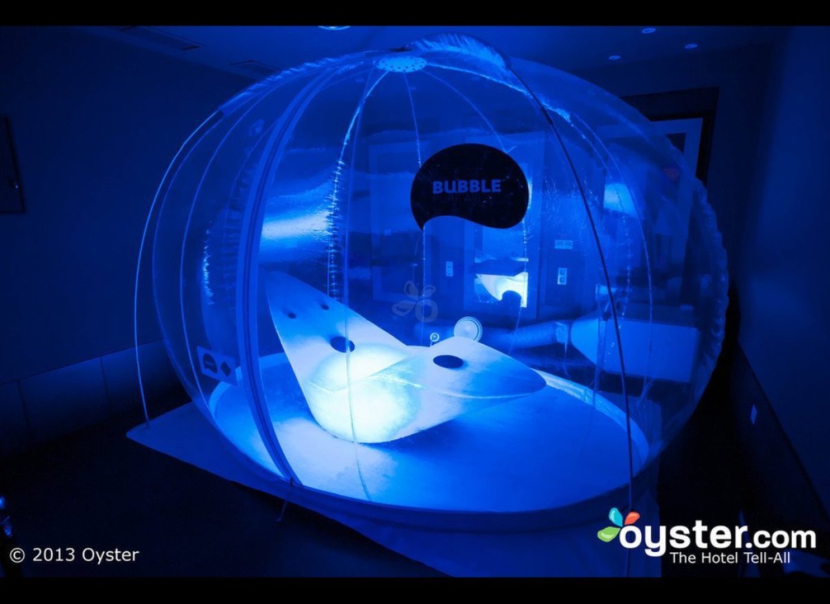 Barcelona, guests can try out the Sparience Oyxgen Bubble. Meant to relieve stress and minimize injury recovery time, these bubbles are filled with 99.5 percent pure oxygen, which should induce intense mental and physical relaxation. The sculpted AlphaSphere bed combines color, shape, and light with sound, vibrations, and warmth to increase the effects of the treatment. It all sounds well and good, but doesn’t it remind you a bit of